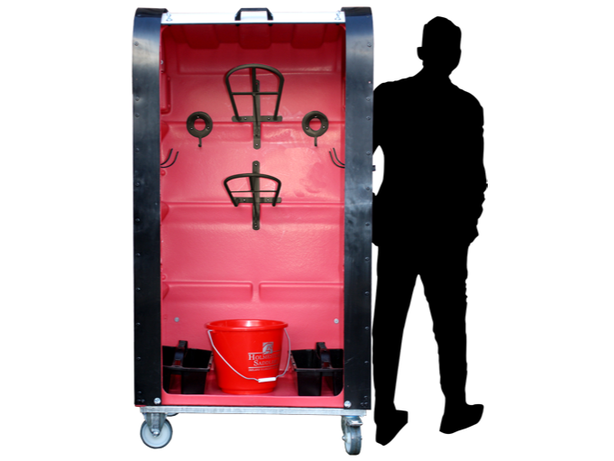 - Built-in saddle racks, bridle hangers, gear hooks, plus portable tack trays and a bucket – everything you need to be fully equipped no matter where you go